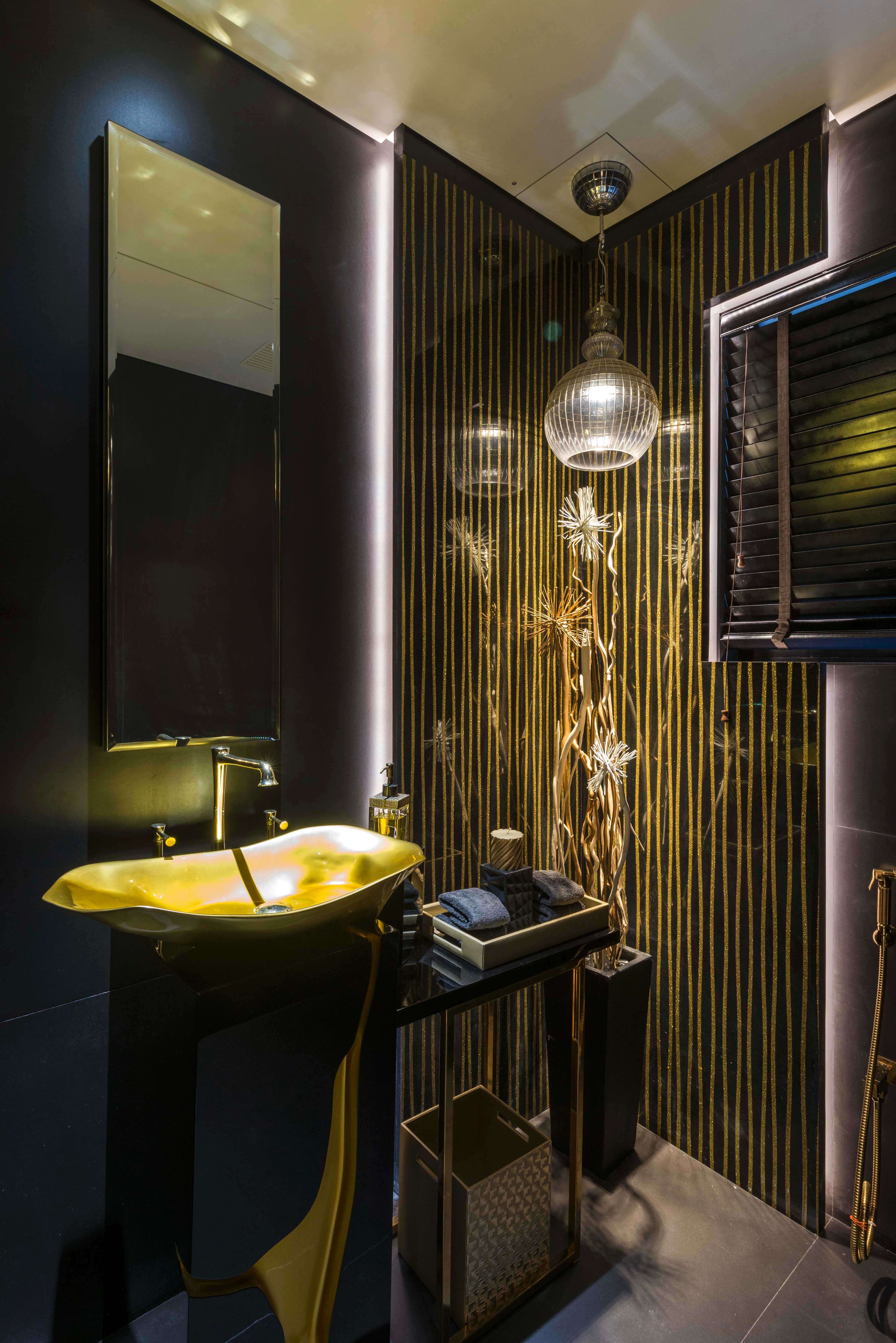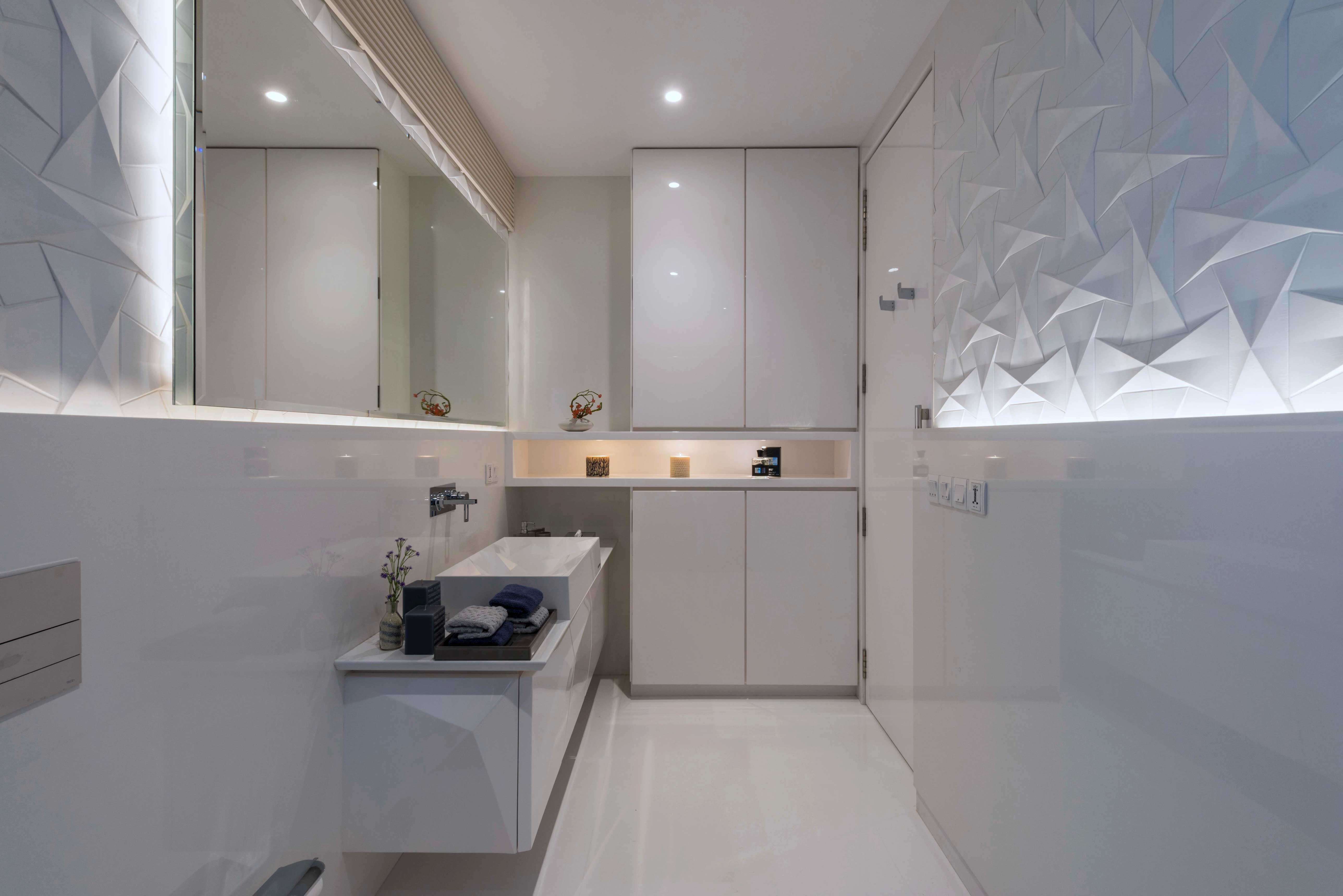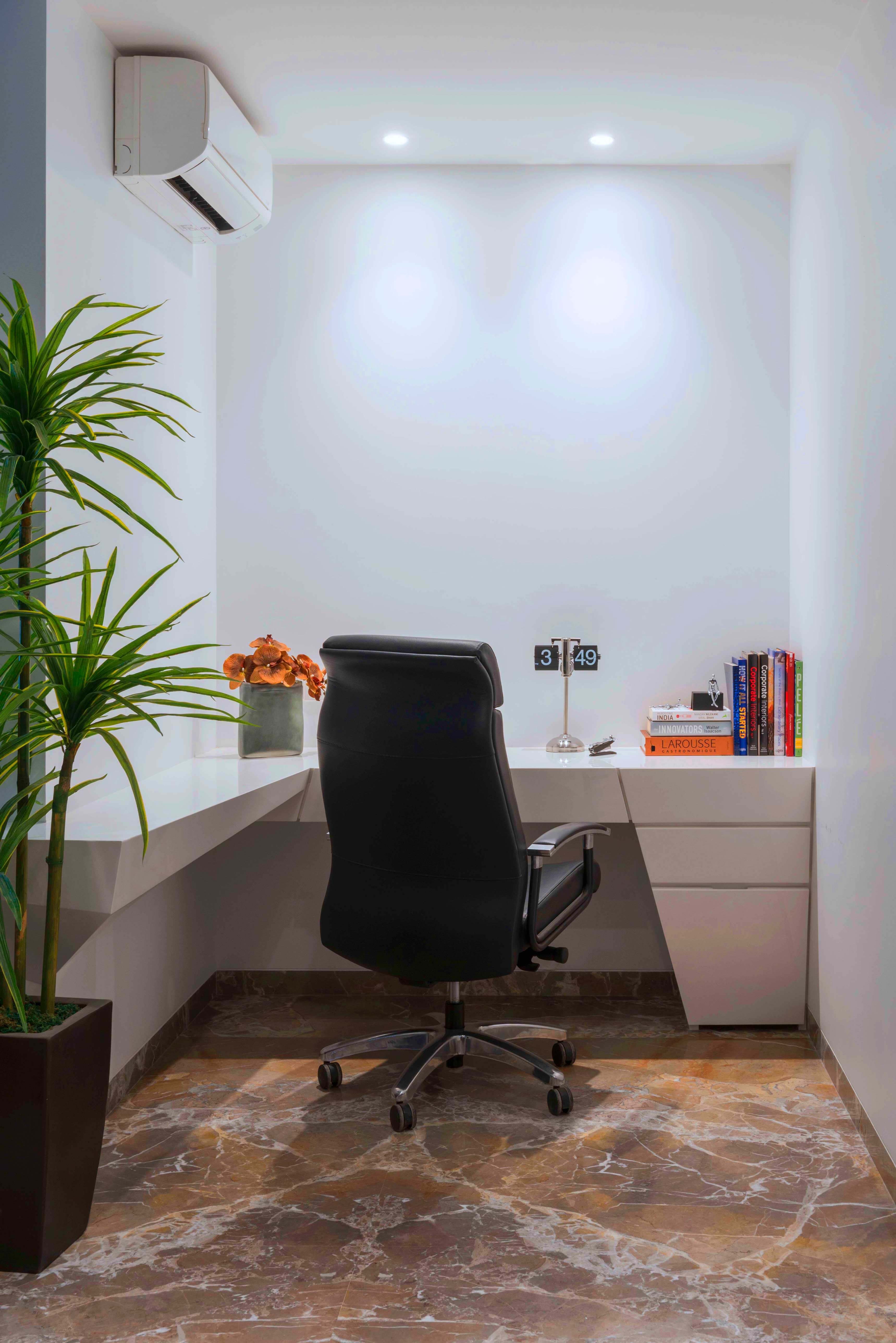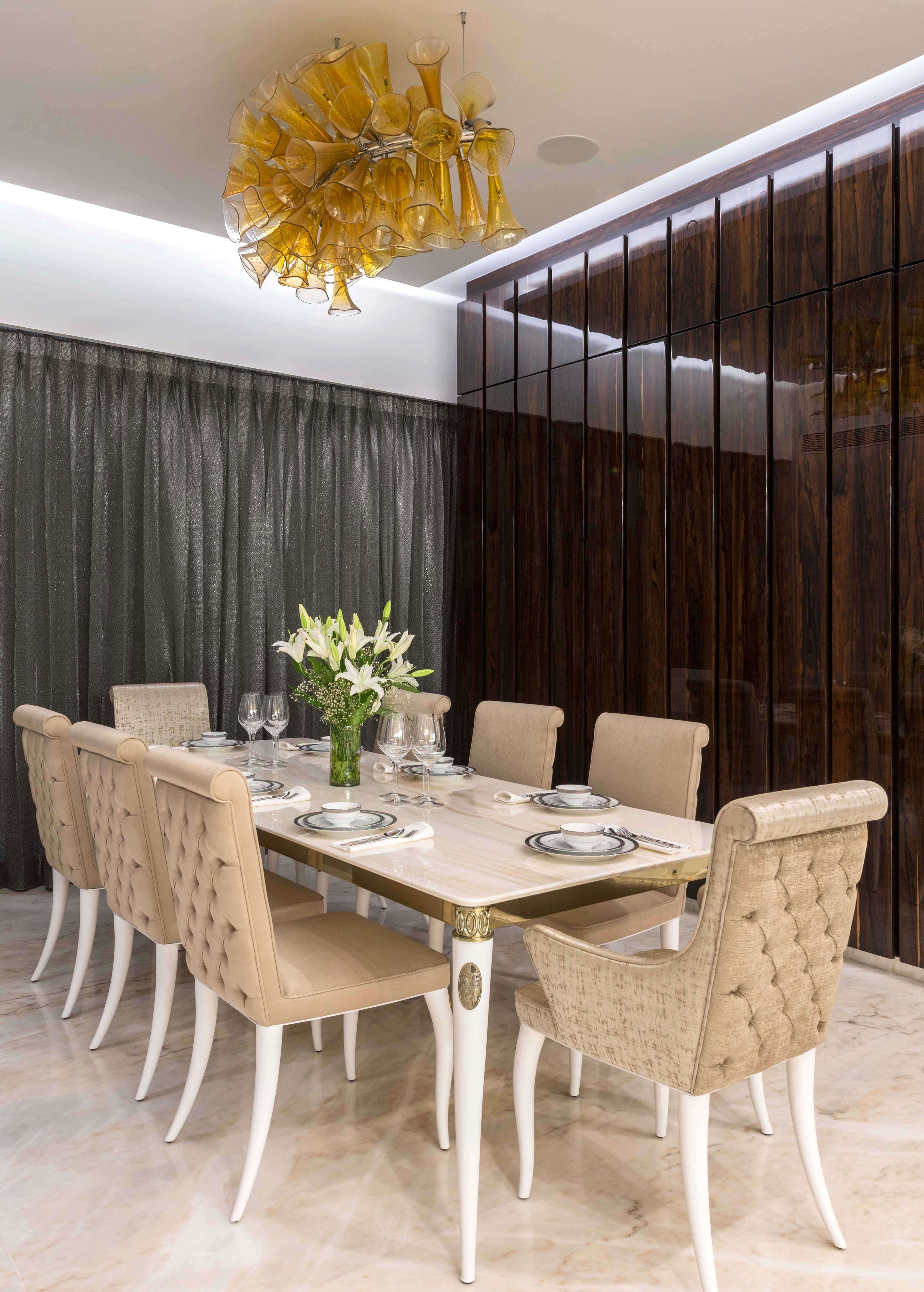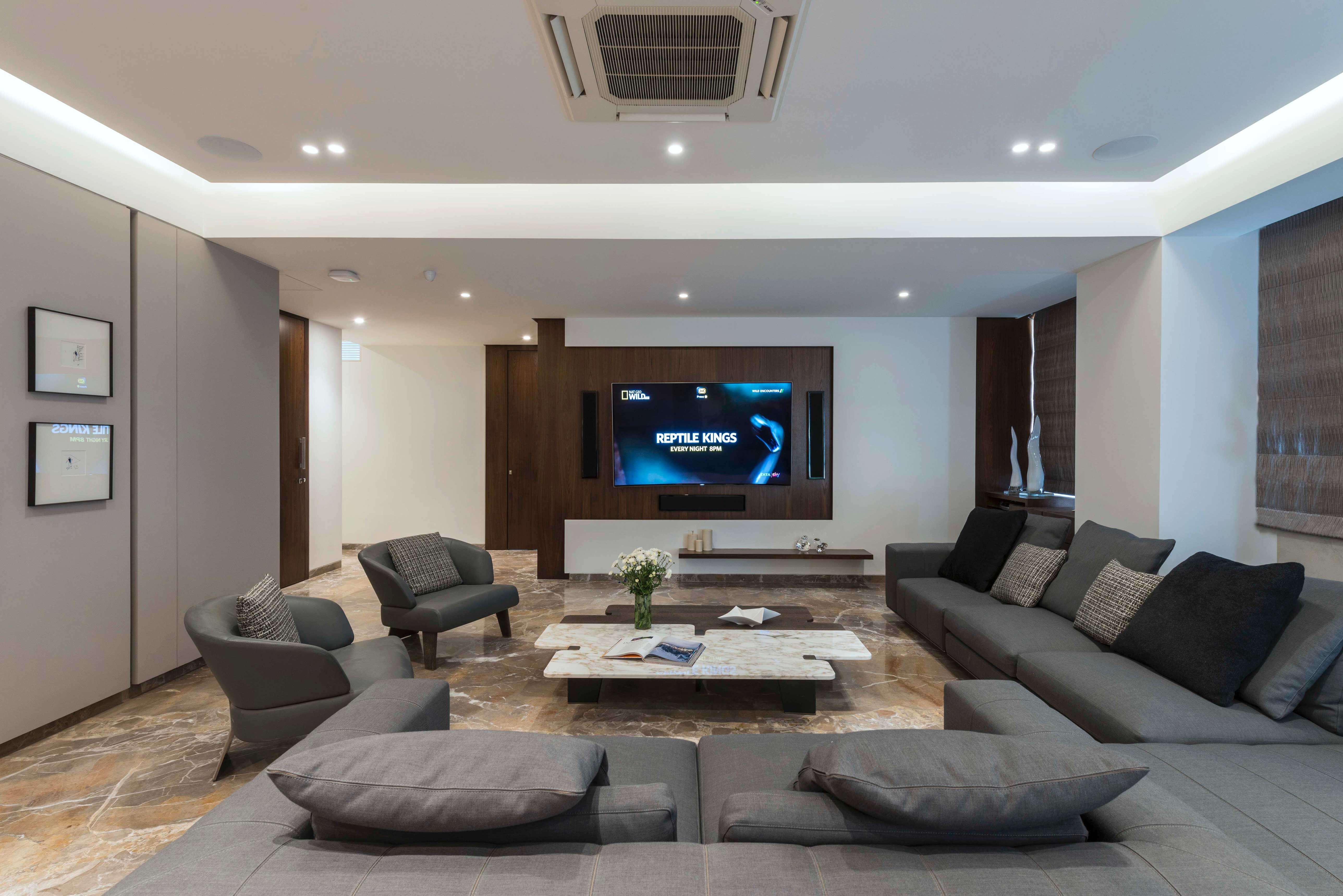A floor plate of 5000 sq.ft. juxtaposes numerous private and entertainment areas resonating with the client’s style and requirements. A terrace with a Jacuzzi pool outside the Bar area lends the house a very chic and novel ambience. The play of light on the textured stone wall in the living room, and the intricately designed pooja room are the few elements which make this urban home unique.
